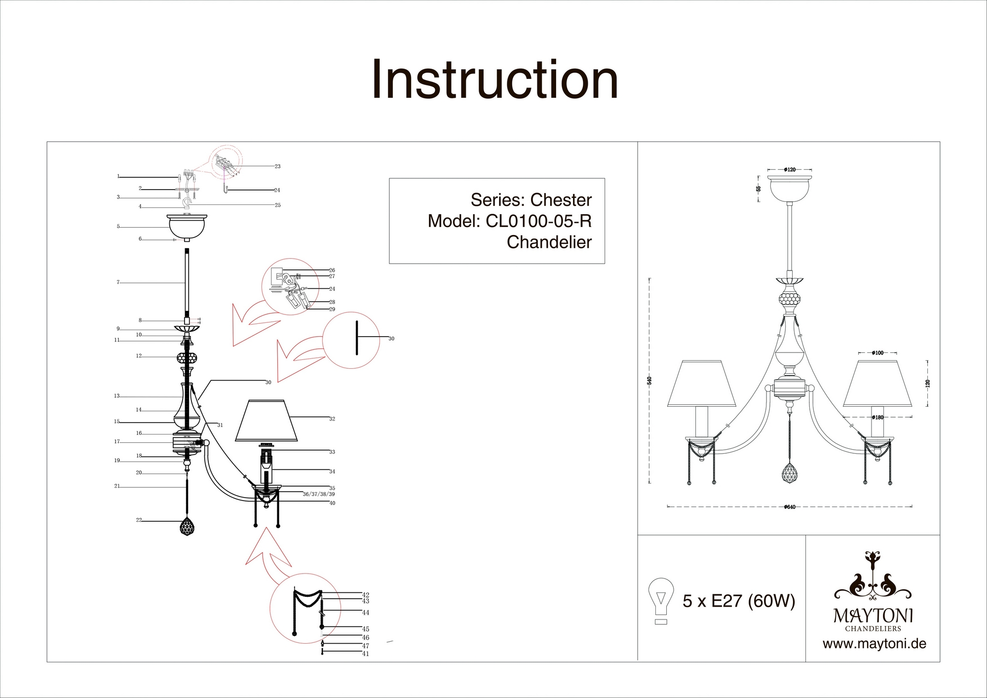 Люстра подвесная RC0100-PL-05-R из серии Chester от компании Maytoni устанавливается на металлический крюк. Классическая люстра украшена хрусталем и прекрасно подойдет в качестве источника основного света для гостиной, спальни, кабинета, оформленных в стиле арт-деко. Основной цвет модели - коричневый, материал арматуры - металл. Люстра имеет 5 абажуров со свечением вверх, материал изготовления - матовая ткань. Модель оснащена цоколем E14 (5xE14), имеет 5 лампочек с общей мощностью 300W и напряжением 220V. Светильник поддерживает подключение диммера. Габариты: высота - 865 мм, диаметр - 640 мм. Лампочки в комплект не входят. Лучшая цена и условия доставки на Maytoni RC0100-PL-05-R в интернет-магазине Fedomo.ru.