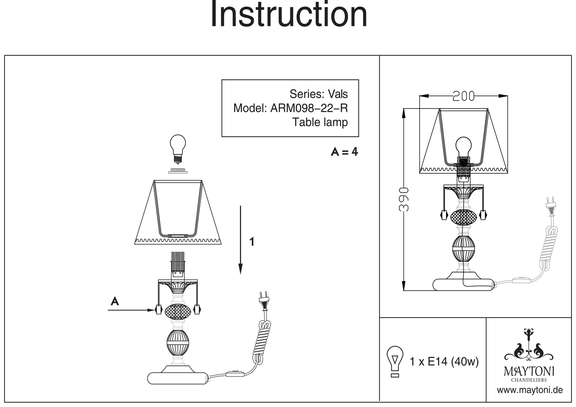 Интерьерная настольная лампа RC098-TL-01-R из серии Vals от компании Maytoni будет удачно смотреться на столе в гостиной, спальне, оформленных в классическом стиле. Интерьерная лампа имеет 1 абажур и 1 лампочку с цоколем E14, мощностью 40W и напряжением 220V. Модель устанавливается на основание, есть возможность подключения диммера. Основной материал и цвет арматуры - голубой металл, материал абажура - ткань. Габариты изделия: высота - 390 мм. Лампочки в комплект не входят. Лучшая цена и условия доставки на Maytoni RC098-TL-01-R в интернет-магазине Fedomo.ru.