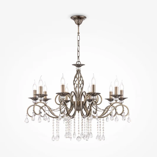 Люстра подвесная RC247-PL-10-R из серии Grace от компании Maytoni регулируется по высоте и устанавливается на металлический крюк. Классическая люстра в виде подсвечника украшена хрусталем и прекрасно подойдет в качестве источника основного света для гостиной, спальни, кабинета, оформленных в стиле барокко. Основной цвет модели - бронза, материал арматуры - металл. Модель оснащена цоколем E14 (10xE14), имеет 10 лампочек с общей мощностью 600W и напряжением 220V. Светильник поддерживает подключение диммера. Габариты: высота - 1160 мм, диаметр - 850 мм. В комплекте есть перчатки для сборки хрусталя. Лучшая цена и условия доставки на Maytoni RC247-PL-10-R в интернет-магазине Fedomo.ru.