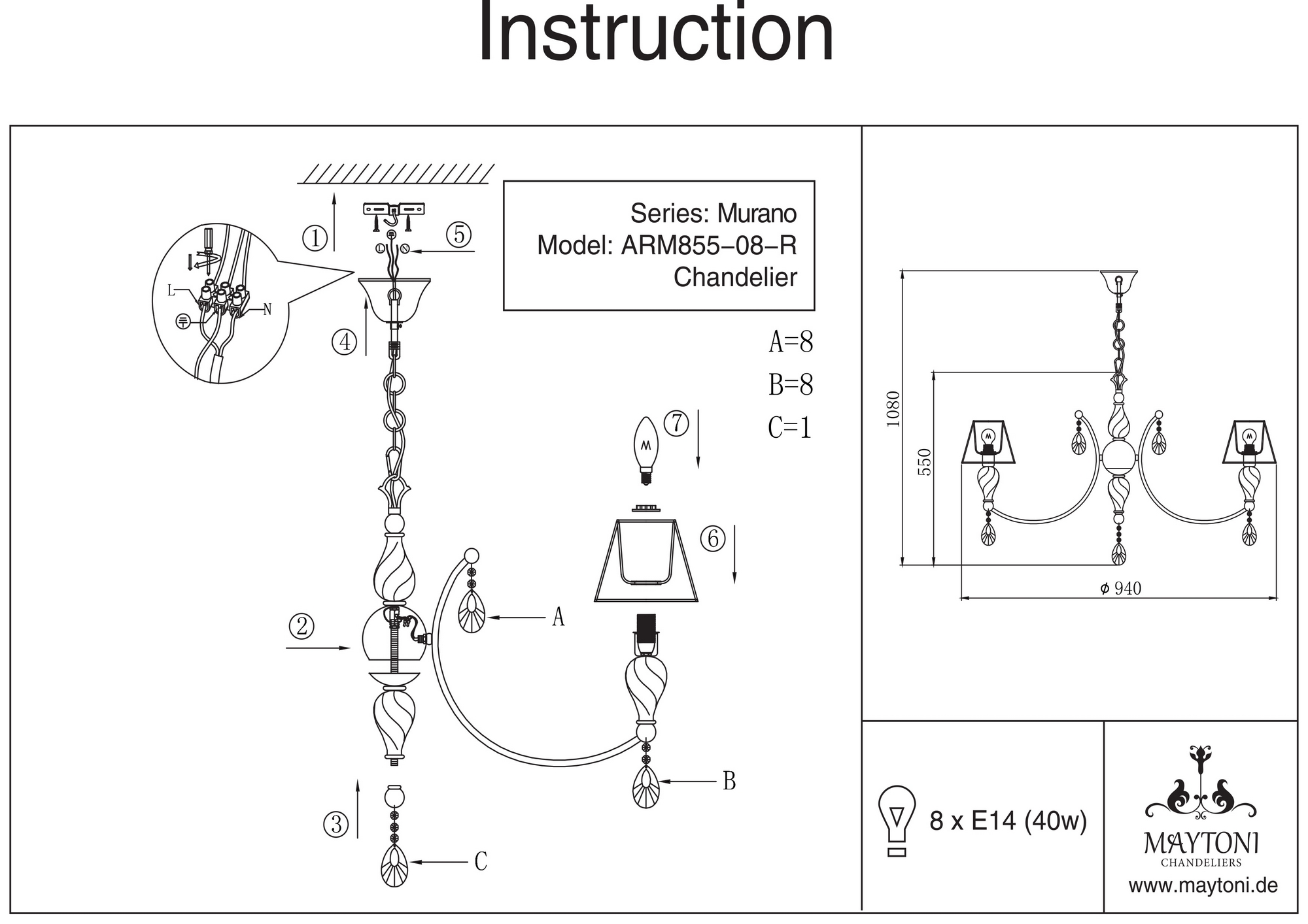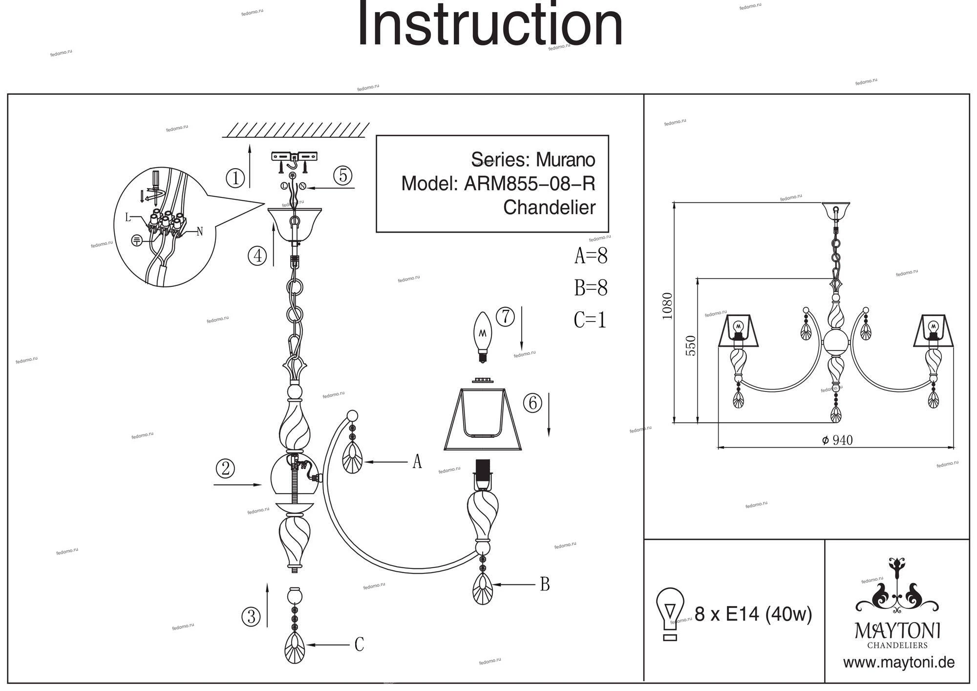 Люстра подвесная RC855-PL-08-R из серии Murano от компании Maytoni устанавливается на металлический крюк. Классическая люстра прекрасно подойдет в качестве источника основного света для гостиной, спальни, кабинета, оформленных в стиле арт-деко. Основной цвет модели - бежевый, материал арматуры - металл. Люстра имеет 8 абажуров, материал изготовления - ткань. Модель оснащена цоколем E14 (8xE14), имеет 8 лампочек с общей мощностью 320W и напряжением 220V. Светильник поддерживает подключение диммера. Габариты: высота - 1000 мм, диаметр - 940 мм, длина подвеса - 400 мм. Лампочки в комплект не входят. Лучшая цена и условия доставки на Maytoni RC855-PL-08-R в интернет-магазине Fedomo.ru.