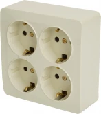 Розетка STEKKER MST16-14S-04 на 4 гнездо, с заземлением. Материал: ABS пластик, цвет слоновая кость, размер 102*102*28мм. Номинальное напряжение 250, номинальный ток 16А, диапазон рабочих температур 0..+35°C, IP20