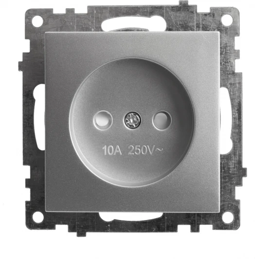 Розетка STEKKER GLS10-7109-03 на 1 гнездо, без заземления. Материал: поликарбонат, латунь, цвет серебро, размер 73*73*35мм. Номинальное напряжение 250, номинальный ток 10А, диапазон рабочих температур 0..+35°C, IP20