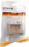 Розетка STEKKER GLS16-7110-02 на 1 гнездо, с заземлением. Материал: поликарбонат, латунь, цвет шампань, размер 73*73*43мм. Номинальное напряжение 250, номинальный ток 16А, диапазон рабочих температур 0..+35°C, IP20