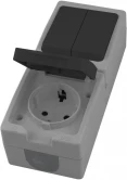 Розетка STEKKER PST16-11-54V/10-121-54 (блок с выключателем двухклав., однополюсным для двух цепей с общим вводом, расстояние между монтажн. отвер-ми: по гориз. - 113мм, по вертик.- 65мм) на 1 гнездо, с крышкой, с заземлением. Материал: Полипропилен, ABS пластик, цвет серый-графит, размер 130*80*55мм. Номинальное напряжение 250, номинальный ток 16А, диапазон рабочих температур 0..+35°C, IP54
