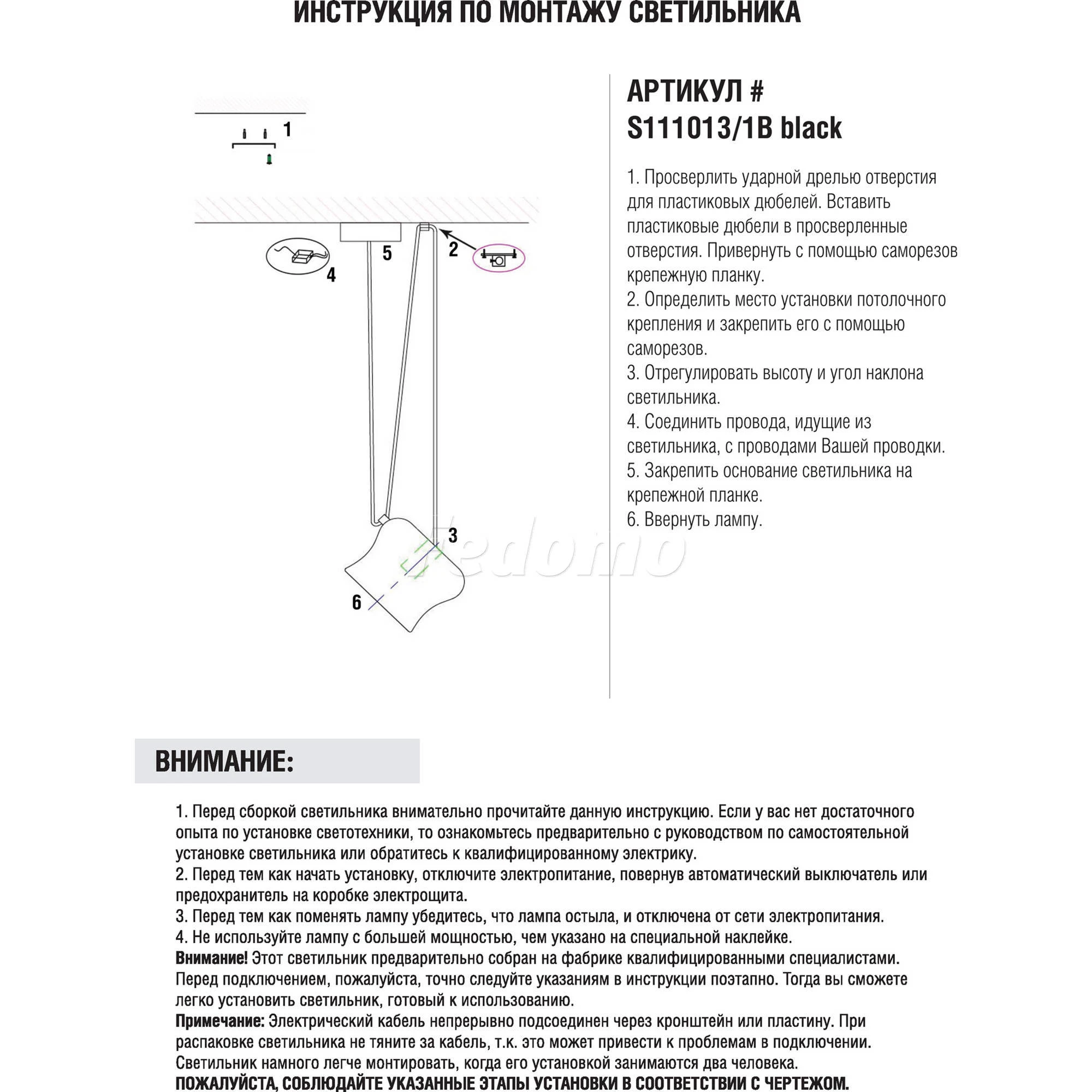 Donolux S111013 S111013/1B black (220V, на проводе)