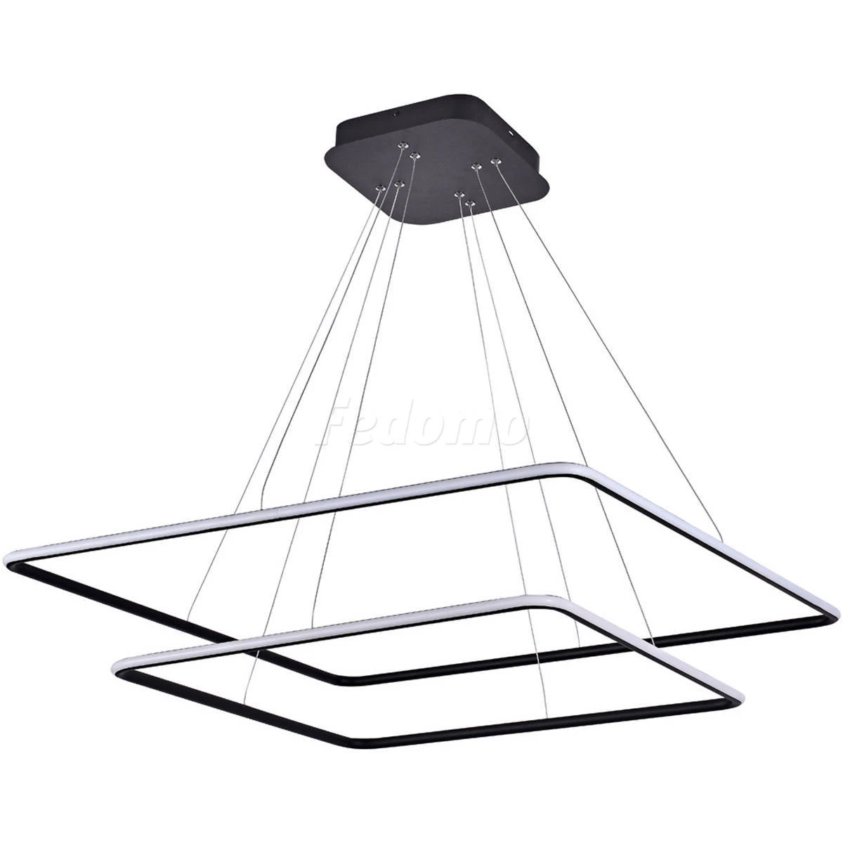 Лампа подвесной люстры расположена на внешней стороне плафона. У люстры 2 плафона с различными размерами: 800x800мм, 600x600мм.