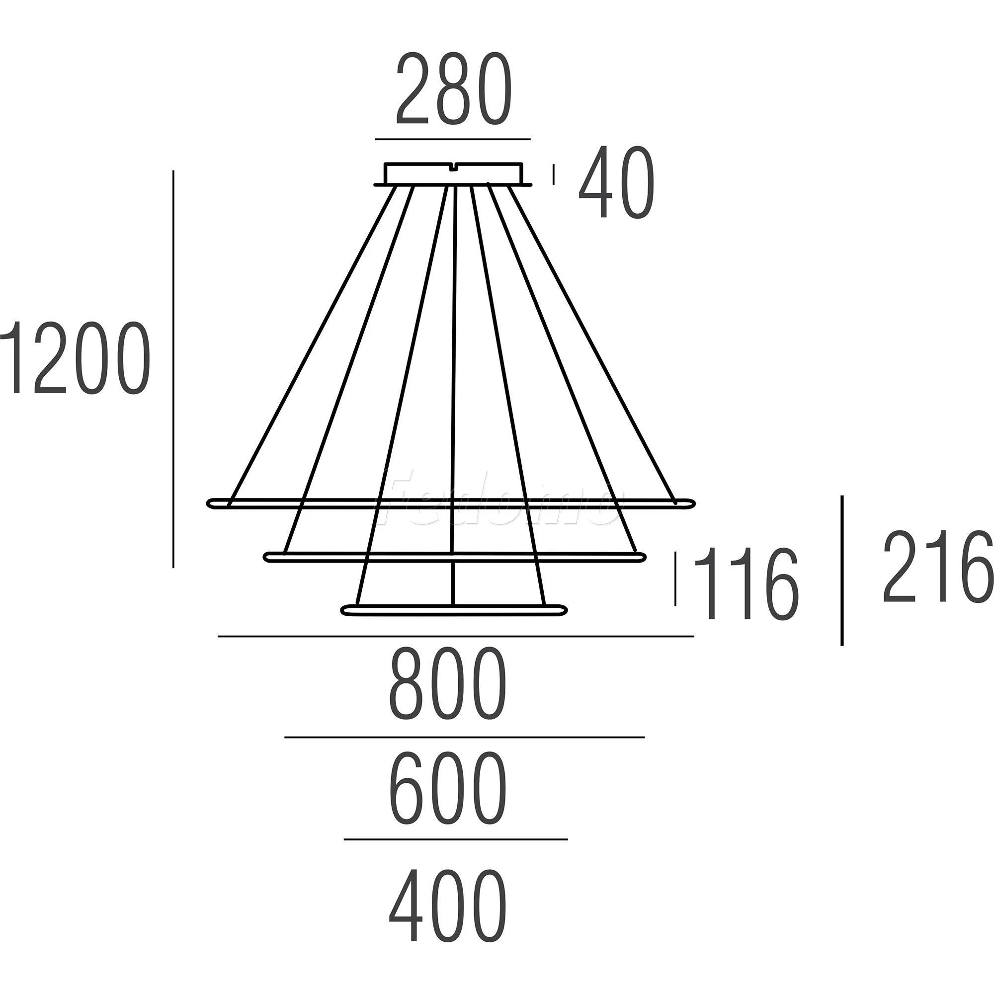 У люстры 3 плафона с различными диаметрами: 800мм, 600мм, 400мм.