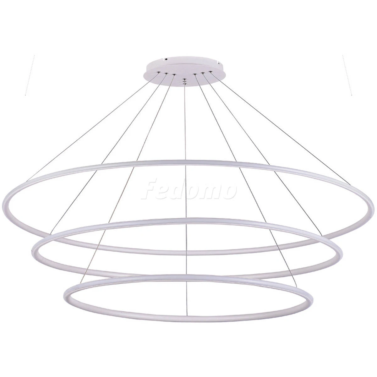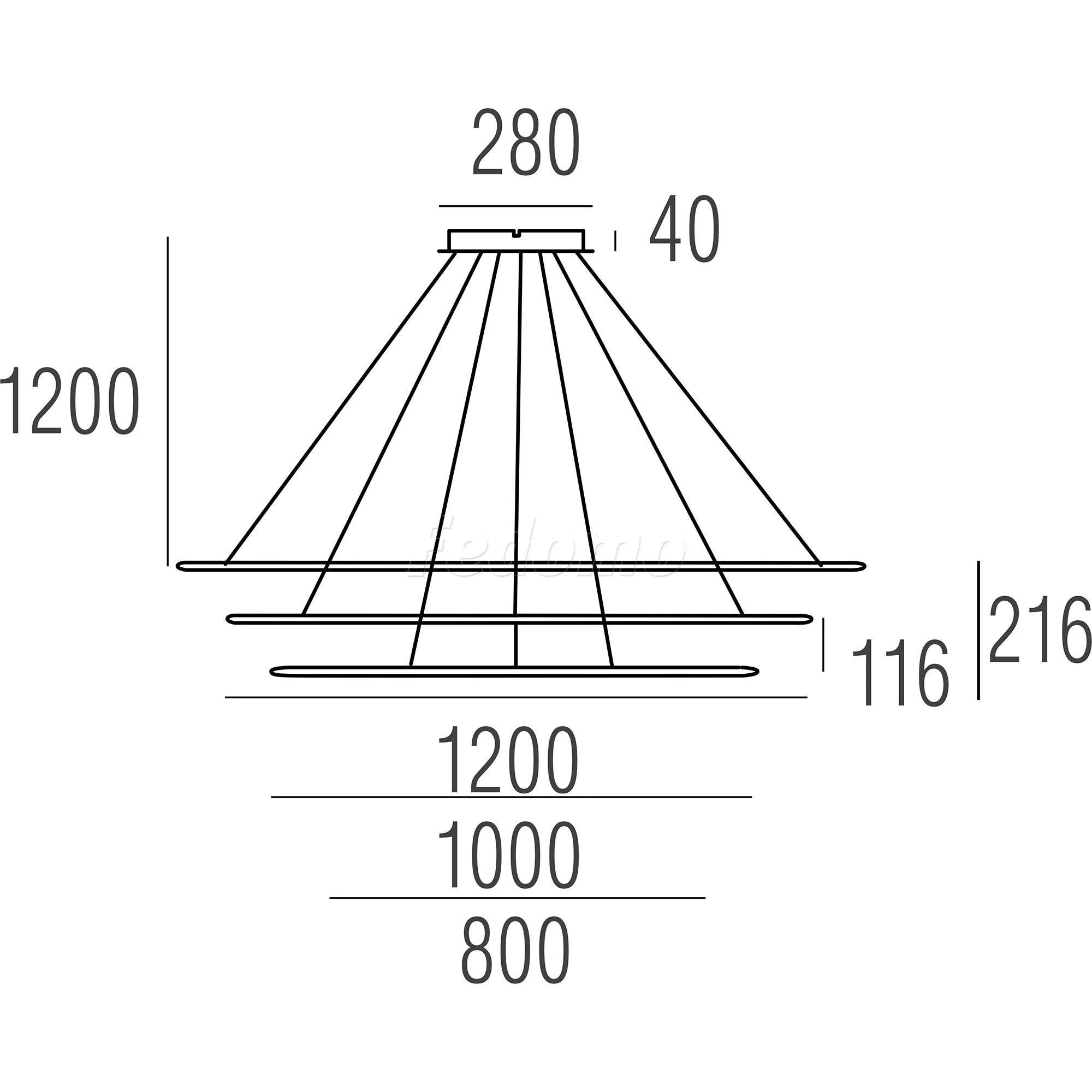 Лампа подвесной люстры расположена на внутренней стороне плафона. У люстры 3 плафона с различными диаметрами: 1200мм, 1000мм, 800мм.