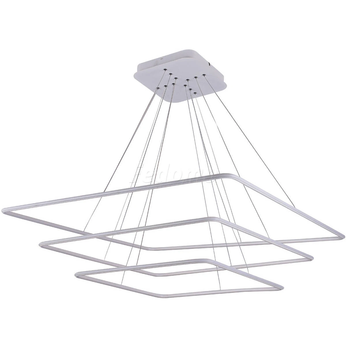 Лампа подвесной люстры расположена на внешней стороне плафона. У люстры 3 плафона с различными размерами: 1000x1000мм, 800x800мм, 600x600мм.