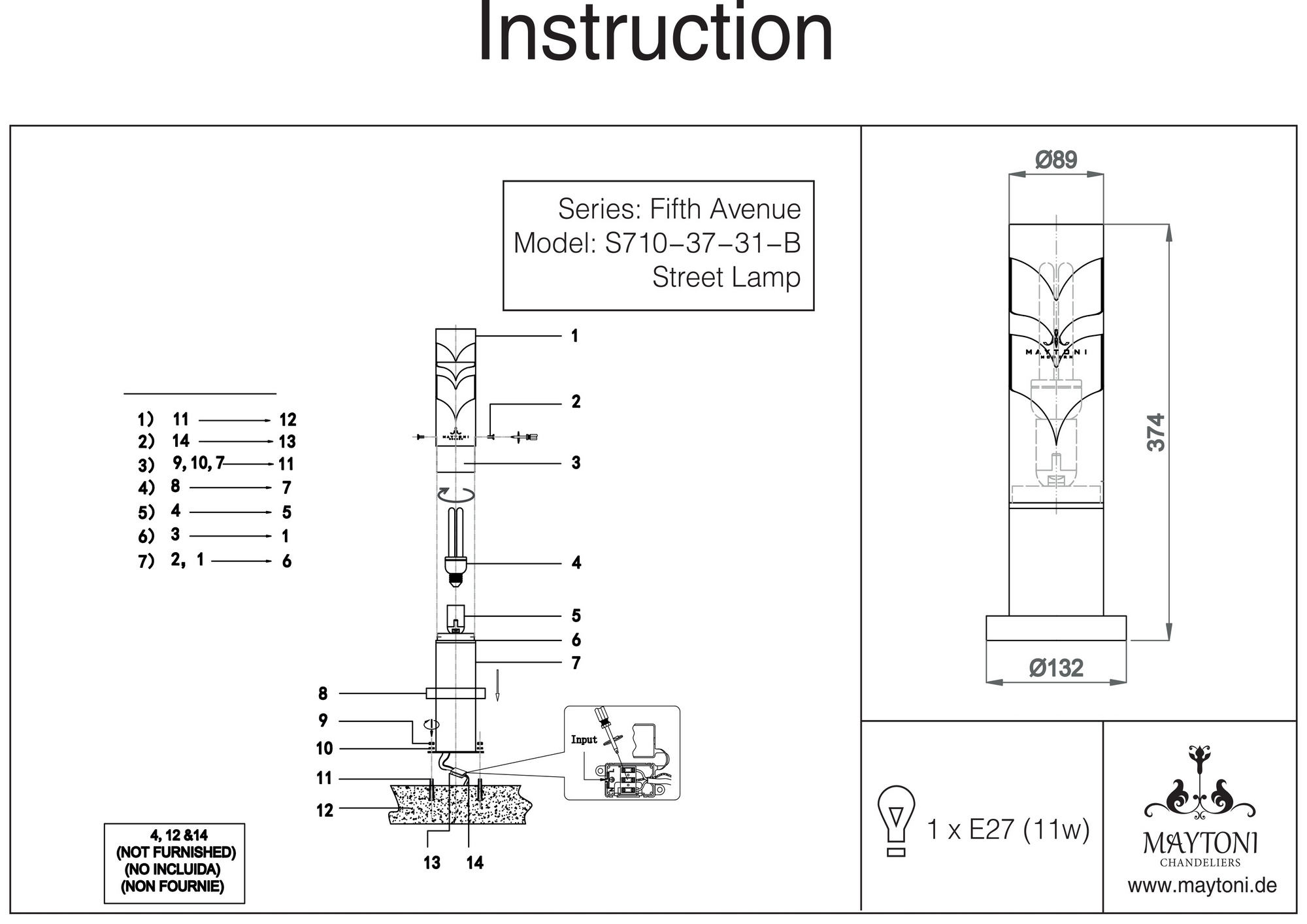 Наземный светильник S710-37-31-B из серии Fifth Avenue от компании Maytoni украсит сад, выполненный в стиле модерн, техно. Светильник поддерживает подключение диммера. Основной цвет и материал изготовления - черный металл, материал плафона - акрил. Модель оснащена цоколем E27 с мощностью лампочки 11W, напряжением 220V. Светильник имеет 1 плафон и 1 лампочку. Степень защиты от влаги и пыли IP44. Габариты изделия: ширина - 132 мм, высота - 374 мм, диаметр - 132 мм. Лучшая цена и условия доставки на Maytoni S710-37-31-B в интернет-магазине Fedomo.ru.