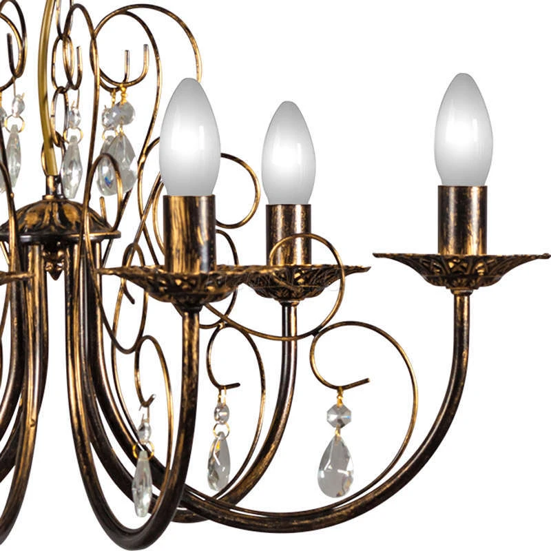 Люстра подвесная кованая S9011-6 от компании Day&Night устанавливается на металлический крюк. Классическая люстра в виде подсвечника прекрасно подойдет в качестве источника основного света для гостиной, кафе, кухни, над обеденным столом, дачи, оформленных в стиле арт-деко, замковый. Основной цвет модели - золото, материал арматуры - металл. Модель оснащена цоколем E14 (6xE14), имеет 6 лампочек с общей мощностью 360W и напряжением 220V. Светильник поддерживает подключение диммера. Габариты: длина - 580 мм, ширина - 580 мм, высота - 620 мм. Лампочки в комплект не входят. Лучшая цена и условия доставки на Day&Night S9011-6 в интернет-магазине Fedomo.ru.