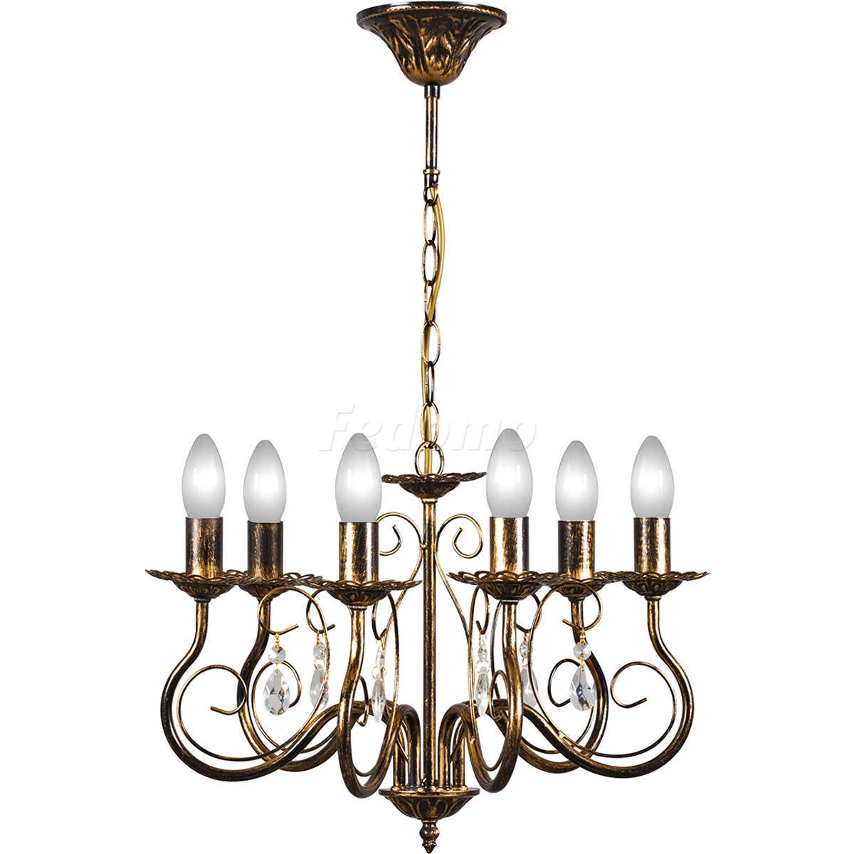 Конструкция подвесной люстры позволяет регулировать высоту изменением количества звеньев цепи.