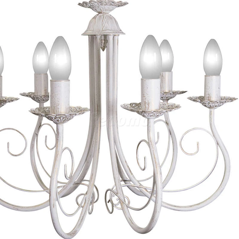 Люстра подвесная кованая S9050-6 от компании Day&Night устанавливается на металлический крюк. Классическая люстра в виде подсвечника прекрасно подойдет в качестве источника основного света для гостиной, кафе, кухни, над обеденным столом, дачи, оформленных в стиле прованс. Основной цвет модели - белый, материал арматуры - металл. Модель оснащена цоколем E14 (6xE14), имеет 6 лампочек с общей мощностью 360W и напряжением 220V. Светильник поддерживает подключение диммера. Габариты: длина - 620 мм, ширина - 620 мм, высота - 620 мм. Лампочки в комплект не входят. Лучшая цена и условия доставки на Day&Night S9050-6 в интернет-магазине Fedomo.ru.
