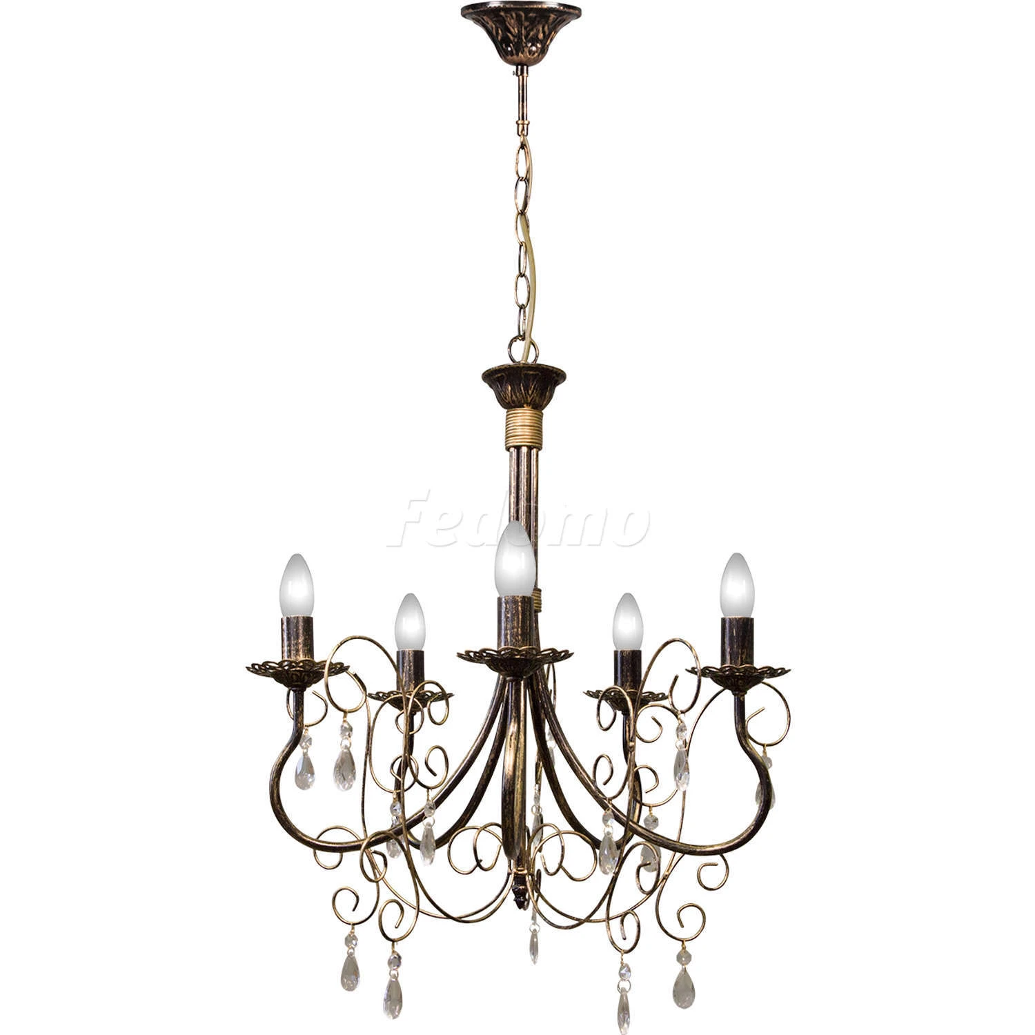 Люстра подвесная кованая S9059-5 от компании Day&Night устанавливается на металлический крюк. Классическая люстра в виде подсвечника прекрасно подойдет в качестве источника основного света для гостиной, кафе, кухни, над обеденным столом, дачи, оформленных в стиле арт-деко. Основной цвет модели - золото, черный, материал арматуры - металл. Модель оснащена цоколем E14 (5xE14), имеет 5 лампочек с общей мощностью 300W и напряжением 220V. Светильник поддерживает подключение диммера. Габариты: длина - 500 мм, ширина - 500 мм, высота - 890 мм. Лампочки в комплект не входят. Лучшая цена и условия доставки на Day&Night S9059-5 в интернет-магазине Fedomo.ru.