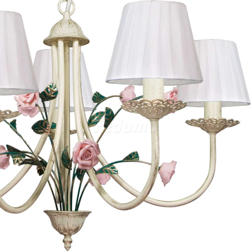 Люстра подвесная кованая S9064-5 от компании Day&Night устанавливается на металлический крюк. Классическая люстра с розами и листьями прекрасно подойдет в качестве источника основного света для гостиной, спальни, оформленных в стиле флористика, прованс. Основной цвет модели - белый, материал арматуры - металл. Люстра имеет 5 абажуров со свечением вверх, материал изготовления - матовая ткань. Модель оснащена цоколем E14 (5xE14), имеет 5 лампочек с общей мощностью 300W и напряжением 220V. Светильник поддерживает подключение диммера. Габариты: длина - 680 мм, ширина - 680 мм, высота - 790 мм. Лампочки в комплект не входят. Лучшая цена и условия доставки на Day&Night S9064-5 в интернет-магазине Fedomo.ru.