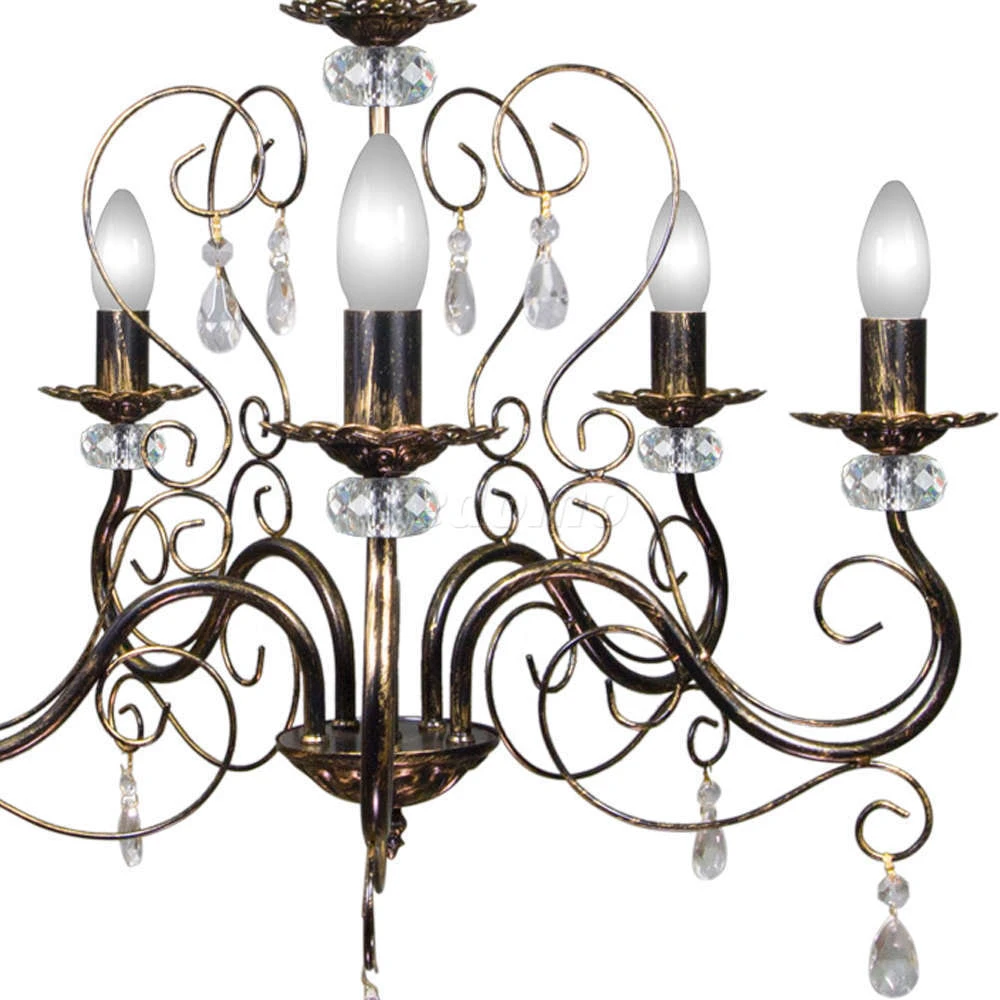 Люстра подвесная кованая S9078-5 от компании Day&Night устанавливается на металлический крюк. Классическая люстра в виде подсвечника прекрасно подойдет в качестве источника основного света для гостиной, кафе, кухни, над обеденным столом, дачи, оформленных в стиле арт-деко. Основной цвет модели - золото, черный, материал арматуры - металл. Модель оснащена цоколем E14 (5xE14), имеет 5 лампочек с общей мощностью 300W и напряжением 220V. Светильник поддерживает подключение диммера. Габариты: длина - 620 мм, ширина - 620 мм, высота - 660 мм. Лампочки в комплект не входят. Лучшая цена и условия доставки на Day&Night S9078-5 в интернет-магазине Fedomo.ru.