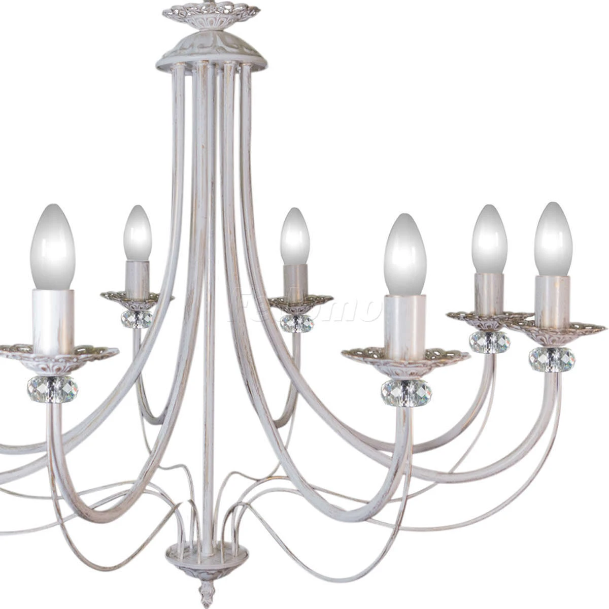 Люстра подвесная кованая S9082-8 от компании Day&Night устанавливается на металлический крюк. Классическая люстра в виде подсвечника прекрасно подойдет в качестве источника основного света для гостиной, кафе, кухни, над обеденным столом, дачи, оформленных в стиле прованс. Основной цвет модели - белый, материал арматуры - металл. Модель оснащена цоколем E14 (8xE14), имеет 8 лампочек с общей мощностью 480W и напряжением 220V. Светильник поддерживает подключение диммера. Габариты: длина - 700 мм, ширина - 700 мм, высота - 930 мм. Лампочки в комплект не входят. Лучшая цена и условия доставки на Day&Night S9082-8 в интернет-магазине Fedomo.ru.