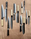 Клинки моделей Hammered выполнены из закаленной до 60 HRC стали VG10 дополнительно защищается прочными обкладками из нержавейки 405 типа. Рукояти, имеющие эллиптический профиль с одной спрямленной боковиной, выполнены из традиционной японской древесины магнолии с пластмассовой оковкой.