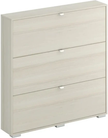 Шкаф для обуви Wide – удобная система закрытого типа для хранения обуви. Вместительный и компактный. На трёх откидных полках располагается до 12 пар обуви. Идеально подойдёт для семьи из 3-4 человек. Обеспечит порядок и чистоту в прихожей, обувь дольше будет выглядеть как новая. На ней не будет скапливаться пыль, форма не деформируется. Практичное решение для небольшой прихожей. Экономит место благодаря своим габаритам: широкий и узкий. Можно поставить в угол или вдоль стены, органично и незаметно впишется в пространство. Средняя высота – наиболее оптимальная, нужная обувь всегда под рукой. Стильный вид за счет древесной фактуры, четкой геометрии и лаконичной архитектуры.| 7 вариантов фасада: светлое или тёмное дерево; глянец; белое или коричневое стекло; зеркальный и другие – выбор под любой интерьер, а также в зависимости от цвета стен и объема освещения. Верхнюю поверхность можно использовать как полку для ключей и небольших вещей. Прочная конструкция, надёжный механизм. Шкаф для обуви состоит из трех отделений, устанавливается на регулируемые опоры и крепится к стене.|Срок гарантии – 24 месяца.