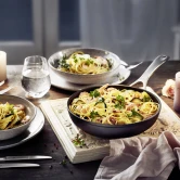 Сковорода Ballarini Alba оснащена прочным, усиленным титаном антипригарным покрытием, что позволяет готовить практически без масла и жира. Элегантная ручка из нержавеющей стали, имеет эргономичную форму и остается прохладной во время приготовления. Биметаллическое основание позволяет
