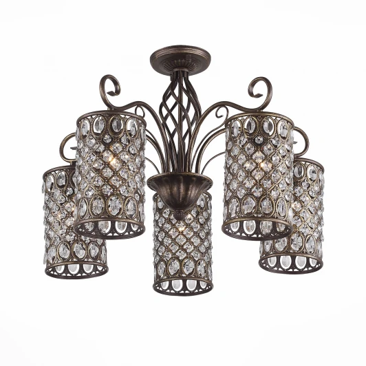 Люстра потолочная хрустальная SL241.202.05 от компании ST Luce устанавливается на монтажную пластину. Люстра прекрасно подойдет в качестве источника основного света для гостиной, спальни, кухни, кабинета, оформленных в стиле восточный, этнический. Основной цвет модели - золото, коричневый, материал арматуры - металл. Люстра имеет 5 плафонов со свечением вниз, материал изготовления - хрусталь, металл. Модель оснащена цоколем E14, имеет 5 лампочек с общей мощностью 300W и напряжением 220V. Светильник поддерживает подключение диммера. Лучшая цена и условия доставки на ST Luce SL241.202.05 в интернет-магазине Fedomo.ru.