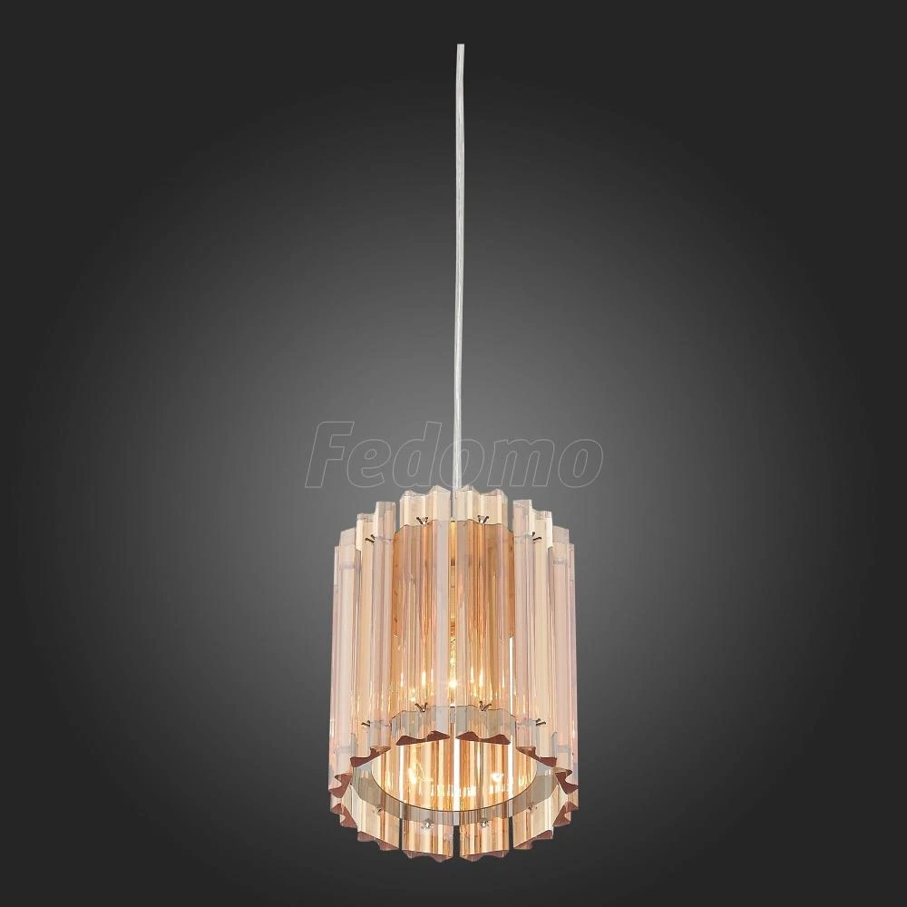Элегантное металлическое основание цвета хрома скрыто за абажуром, выполненном из стеклянных гофрированных пластин янтарного цвета. Эти светильники станут яркой деталью интерьера зала, гостиной, украсят пространство ресторана или изысканного кафе.