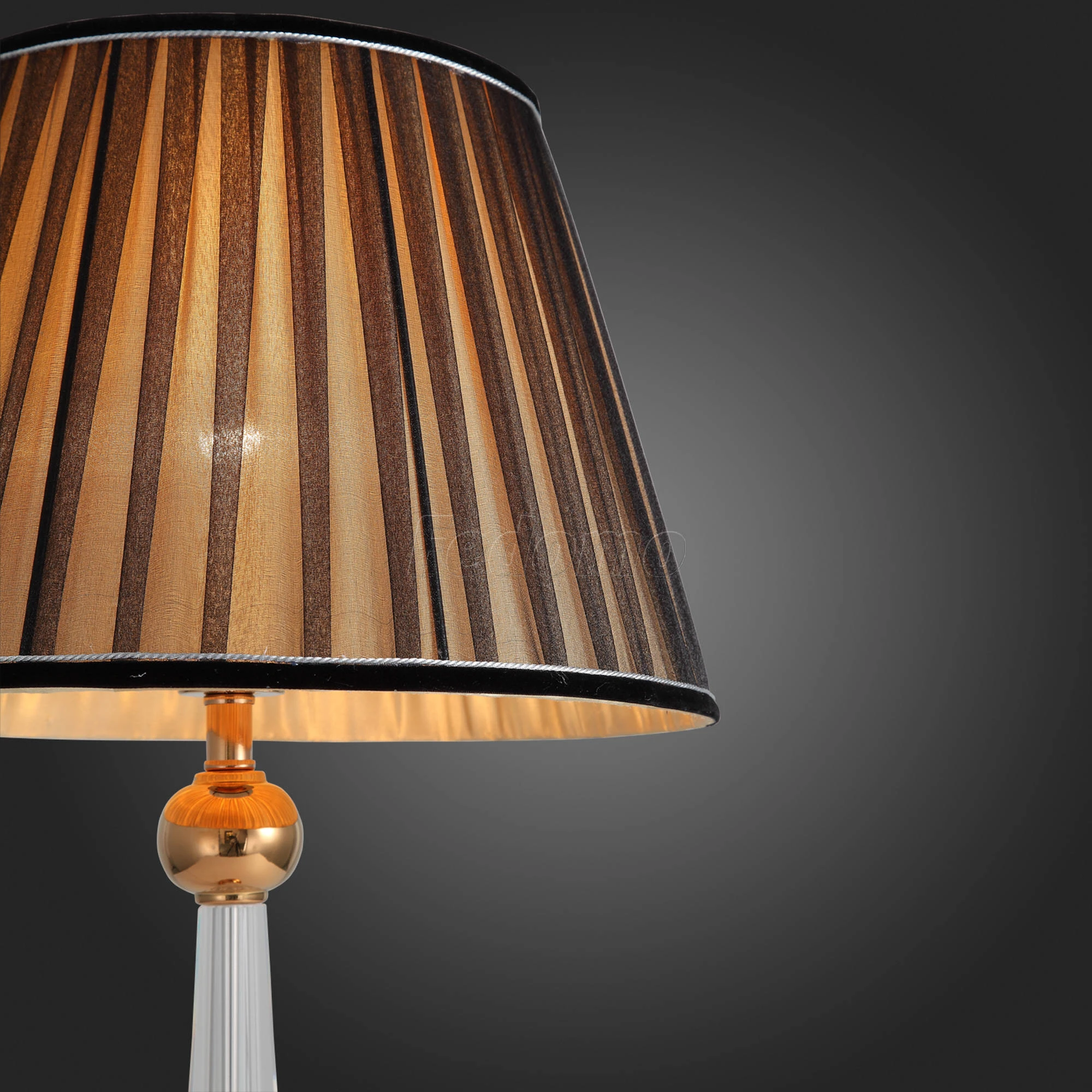Интерьерная настольная лампа SL965.214.01 из серии Vezzo от компании ST Luce будет удачно смотреться на столе в гостиной, кабинете, холле, прихожей и коридоре, спальне, оформленных в стиле классический, ар нуво. Интерьерная лампа имеет 1 абажур и 1 лампочку с цоколем E27, мощностью 60W и напряжением 220V. Модель устанавливается на основание, есть возможность подключения диммера. Основной материал и цвет арматуры - черный металл, стекло, материал абажура - ткань. Габариты изделия: высота - 700 мм. Лампочки в комплект не входят. Лучшая цена и условия доставки на ST Luce SL965.214.01 в интернет-магазине Fedomo.ru.