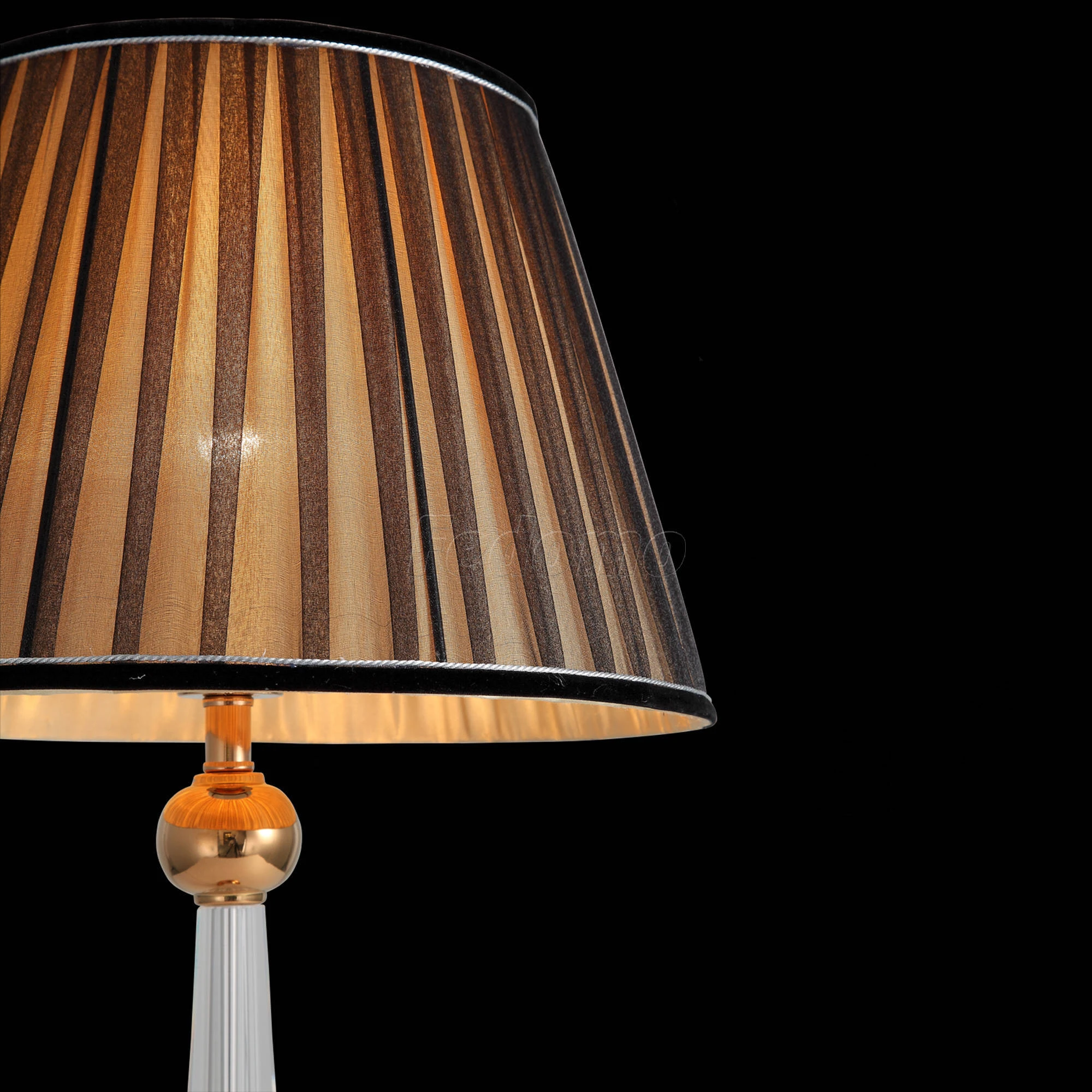 Модели коллекции Vezzo украсят интерьер спальни, гостиной или коридора. Металлическая ножка основания цвета бронзы или глянцевого золота обрамлена декоративным стеклом и украшена тканевым абажуром бежевого, кофейного или черного цвета. Эти светильники- ид