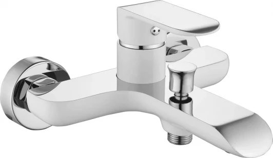 Смеситель для ванны с душем Bien Due BB01006402 от турецкого производителя Bien устанавливается на стену, выполнен в расцветке белый и хром и будет отлично смотреться в современном интерьере. Материал изготовления - латунь. Смеситель округлой формы с глянцевой поверхностью имеет 2 отверстия для монтажа, подводку с фиксированным изливом каскадной формы и рычажное управление. Рычаг расположен сверху. Длина излива - 17.9 см. В качестве механизма используется керамический картридж. Оснащение модели: крепления, дивертор, эксцентрики. Габариты: ширина - 21.2 см, глубина - 20.4 см, высота - 10.8 см. Гарантия на изделие составляет 5 лет. Заказывайте Bien BB01006402 онлайн по низкой цене с гибкими условиями доставки на Fedomo.ru!