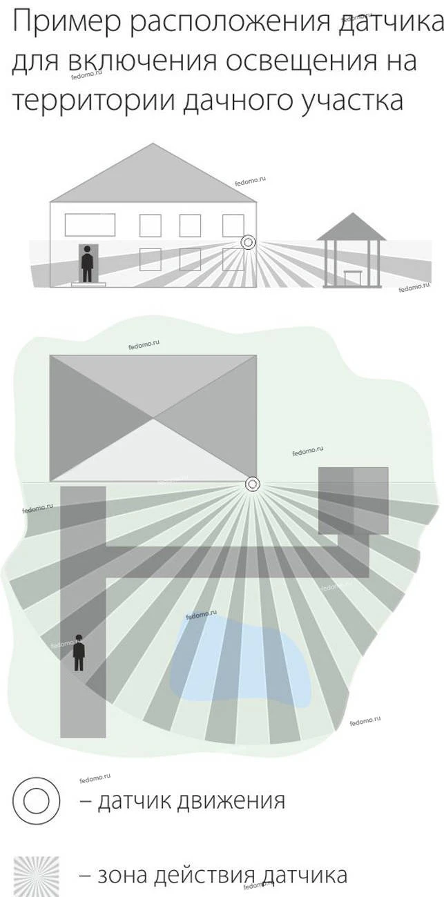 Датчик движения имеет две оси вращения, это позволяет максимально точно настроить зону охвата. Встроенный датчик освещения и таймер срабатывания, позволят выставить настройки для достижения максимально комфортного режима работы, под условия освещенности и продолжительность срабатывания исполнительного механизма. Продолжительность подачи электропитания на потребитель регулируется таймером срабатывания от 10 секунд до 7 минут.