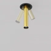 Материал корпуса – металл; цвет – белый, чёрный и латунный. Миниатюрные размеры. Плафон из двух частей. Горизонтальный и вертикальный поворотный механизм. LED-источник света. Цветовая температура – 3000К или 4000К. Высокий коэффицициент цветопередачи >90.