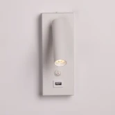 Минималистичный современный дизайн. Возможность регулировать направление света. Светильник оснащен индивидуальным выключателем и USB-портом, что делает его особенно удобным и комфортным. Светодиодный источник света экономичен и безопасен. Металлическое основание настенного бра окрашено в белый цвет. Корпус плафона выполнен из сплава алюминия с цинком и окрашен в цвет основания.