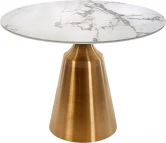 Стол с круглой столешницей не раскладывающийся, МДФ 19 мм с керамикой 6мм D100см. Опора металл цвет золто (нитрид титана). D46см. Вес: 41кг. Стол поставляется в разобранном виде, 2 коробки.