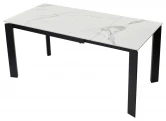 Описание модели: вставка 50 см выдвигается с торца вместе с ножками со встроенными колесами, не царапающими пол, что позволяет быстро и легко увеличить длину столешницы до 170 см; столешница из монолитной керамической плиты в цвете белый мрамор, глянец, толщина 11 мм, не царапается, не впитывает жидкость, легко моется, не боится перепадов температур; основание стола - металл, цвет – черный. Упакован в 2 коробки.