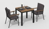 Материалы: всесезонный алюминий /тик. Цвет: каркас - темно- серый карбон /столешница - тик. Комплектация и габариты: Габариты Д 80 * Ш 80 * В 75. Особенности: столешница выполнена из тиковых планок.