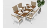 Материалы: всесезонный алюминий, тик. Цвет: каркас - белый / столешница - тик. Комплектация и габариты: Габариты Д 180 * Ш 90 * В 75. Особенности: столешница выполнена из тиковых планок.