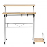 Материал: МДФ15 мм, металл 0.7мм Кромка ПВХ 0,6 мм Размер: 80 х (34+24) х 80-130см Толщина столешницы: 15мм Вес: 12кг Максимальная нагрузка: 50кг Полка для монитора размерм 80х34см Полка для клавиатуры с ограничителем размером 56х24см Полка для мыши размером 24х24см Полка для системного блока размером 24х40см Регулировка высоты 80-130см Регулировка наклона у полки для клавиатуры 6 пластиковых колес