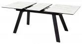 Стол Морис 140 БЕЖЕВЫЙ МРАМОР, стекло/ ЧЕРНЫЙ