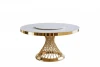 Столешница - керамика, цвет: белый мрамор. Вращающийся съемный поднос Lazy Susan (70см) - керамика, цвет: белый мрамор Основание: нержавеющая сталь, глянцевое золото 140х140х75 см Страна производитель: Китай Гарантия 1 год