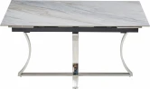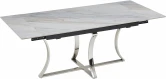 Стол обеденный раскладной Столешница: керамика, цвет: белый мрамор Основание: нержавеющая сталь, хром 150(25+25)*90*75 см Страна производитель: Китай Гарантия 1 год