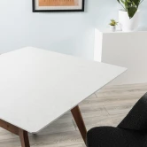 Стол R-Home Нарвик 860*860 мрамор Бьянко Темный орех