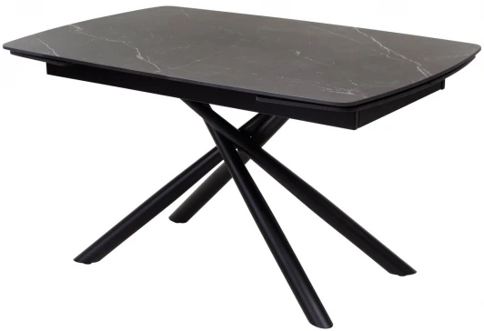 Описание модели: двухсторонняя торцевая система раскладывания, две независимые вставки по 30 см позволяют увеличить длину столешницы на 170 или 200 см при необходимости; монолитная керамика матовая в цвете черный мрамор, толщина столешницы 11 мм, не царапается, не впитывает загрязнения, термостойкая; основание стола - металл, цвет – черный. Упакован в 2 коробки.