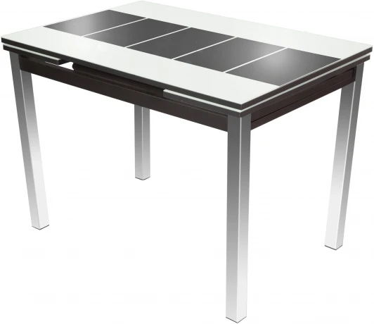 100324 Стол Шанхай Каре, Черный муар/Стекло белое/Рисунок черный, Аврора
