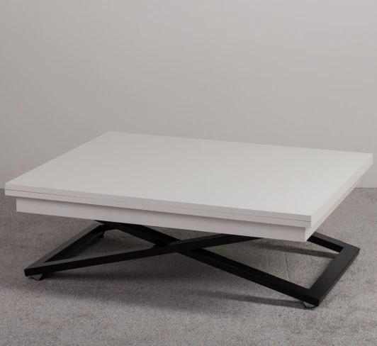 Трансформирующиеся столы – это удобная и функциональная мебель, экономящая полезную площадь помещения. Подобное изделие за считанные секунды превращается из небольшого журнального столика в полноценный рабочий или обеденный, а затем складывается обратно, экономя квадратные метры. Размеры в нижнем положении: Д: 80 см x Ш: 101 см x В: 36 см Размеры в верхнем положении: Д: 80 см x Ш: 202 см x В: 76 см Регулировка высоты в 9 положениях Стол имеет восемь положений высоты стола с шагом подъема в 5 см Материал - окрашенный металл Все узлы трансформации закрыты шумоизолирующими материалами, что обеспечивает их практически бесшумную работу