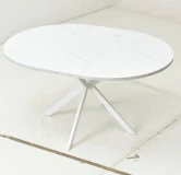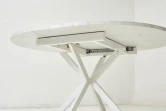 Описание модели: столешница - круглая ЛДСП EGGER толщиной 25 мм, раздвижная; основание стола - металл, профиль 50х25 мм, цвет - белый; Упакован в 1 коробку.