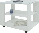 Журнальный стол в стиле современном, хай-тек 007628 от российского бренда Mebelik. Каркас изготовлен из стекла, ДСП. Цвет – белый. Размеры: высота – 56,5 см, ширина – 65 см, длина – 45 см. Заказывайте Mebelik 007628 онлайн по низкой цене с гибкими условиями доставки на Fedomo.ru!
