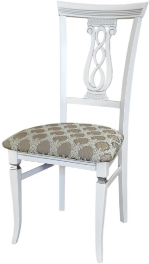 Обеденный стул в классическом стиле 006434 от российского бренда Mebelik. Каркас изготовлен из дерева, ППУ. Цвет – белый, серебро. Размеры: высота – 100 см, ширина – 47 см, длина – 45 см. Заказывайте Mebelik 006434 онлайн по низкой цене с гибкими условиями доставки на Fedomo.ru!
