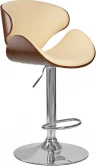 4905-LMZ KARTER, цвет сиденья кремовый, цвет каркаса сиденья коричневое дерево, цвет основания хром Стул барный DOBRIN KARTER (коричневое дерево, кремовый) 4905-LMZ KARTER, цвет сиденья кремовый, каркаса коричневое основания хром