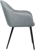 Хотите купить кресло? Не спешите! Стул Frida такой же мягкий и удобный, как кресло и тоже имеет подлокотники. При этом он намного легче, мобильнее и занимает меньше места. Отличительная особенность серии в использовании удобных подлокотников и мягкой рогожки для обивки. Нейтральный серо-синий цвет подчеркнет классический интерьер. Сочетание серо-синего и черного цветов — это классика, в которой стулья для кухни или гостиной подчеркнут строгость и изысканность интерьера. А металлические ножки будут отлично сочетаться с мебелью с аналогичными ножками или фурнитурой.