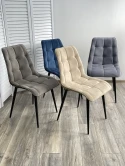 Сиденье обито велюром. Строчка - квадрат. Ножки стула - металл черного цвета. Упакован - 4 шт./1 кор.